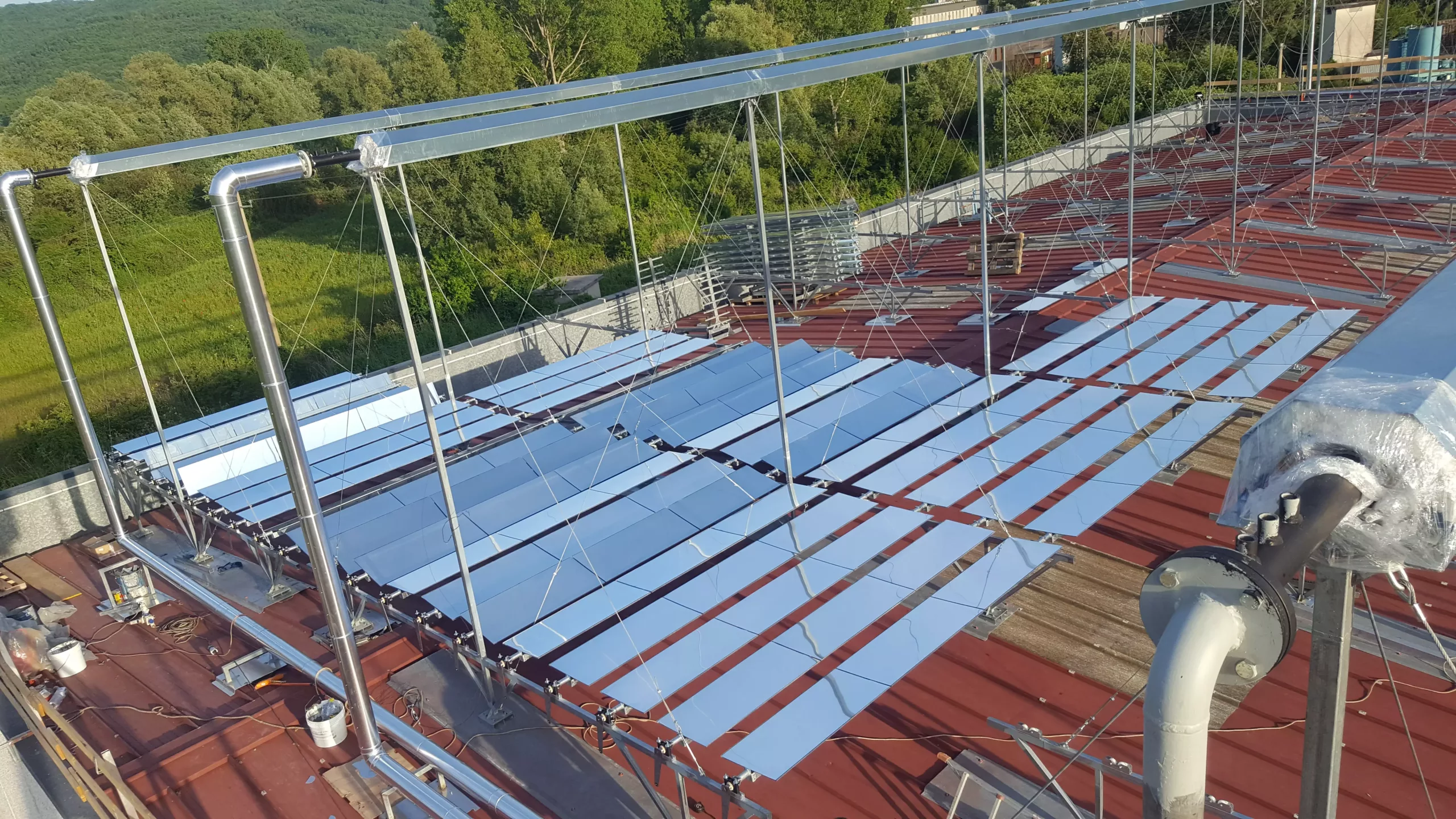 Impianto di Solar-Cooling con sistema solare a concentrazione ThermeX e frigorifero ad assorbimento di potenza 125 kW.